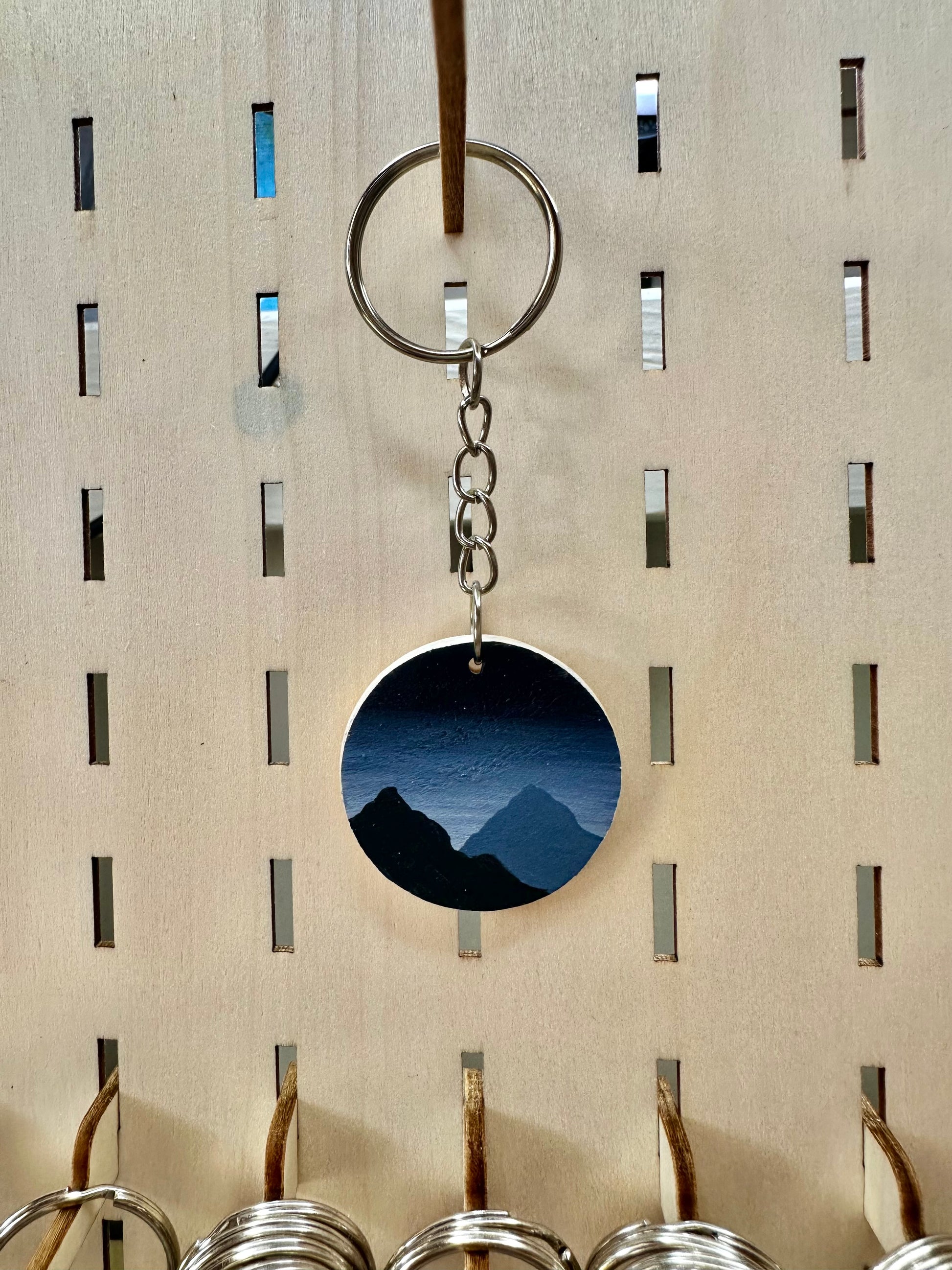 A handmade wooden keyring, carefully hand painted with acrylics and finished with a protective varnish for durability. Lightweight and sturdy, it’s ready to clip on to your keys, bag, or zipper pull adding a unique, handcrafted touch wherever you take.