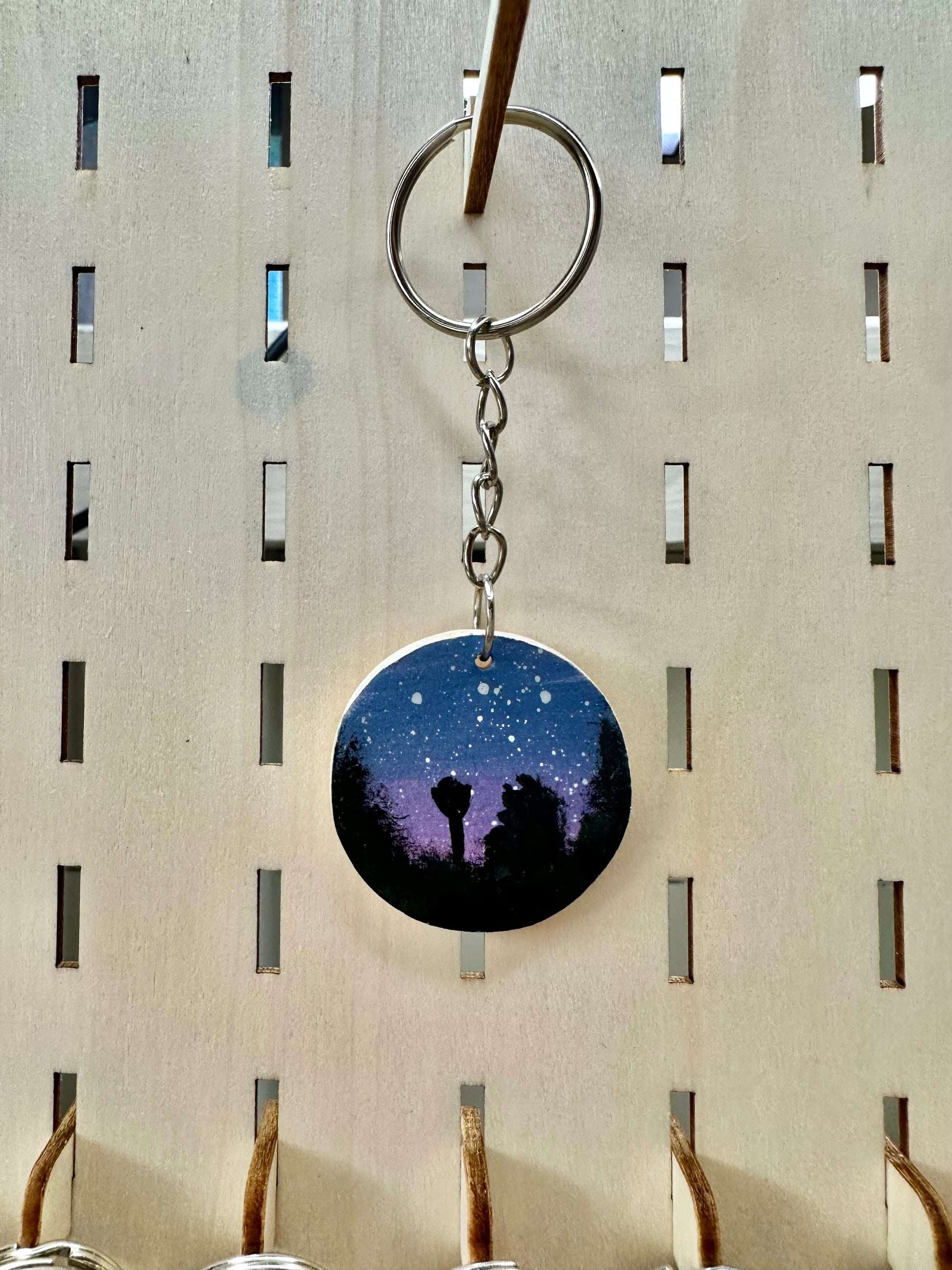 A handmade wooden keyring, carefully hand painted with acrylics and finished with a protective varnish for durability. Lightweight and sturdy, it’s ready to clip on to your keys, bag, or zipper pull adding a unique, handcrafted touch wherever you take.