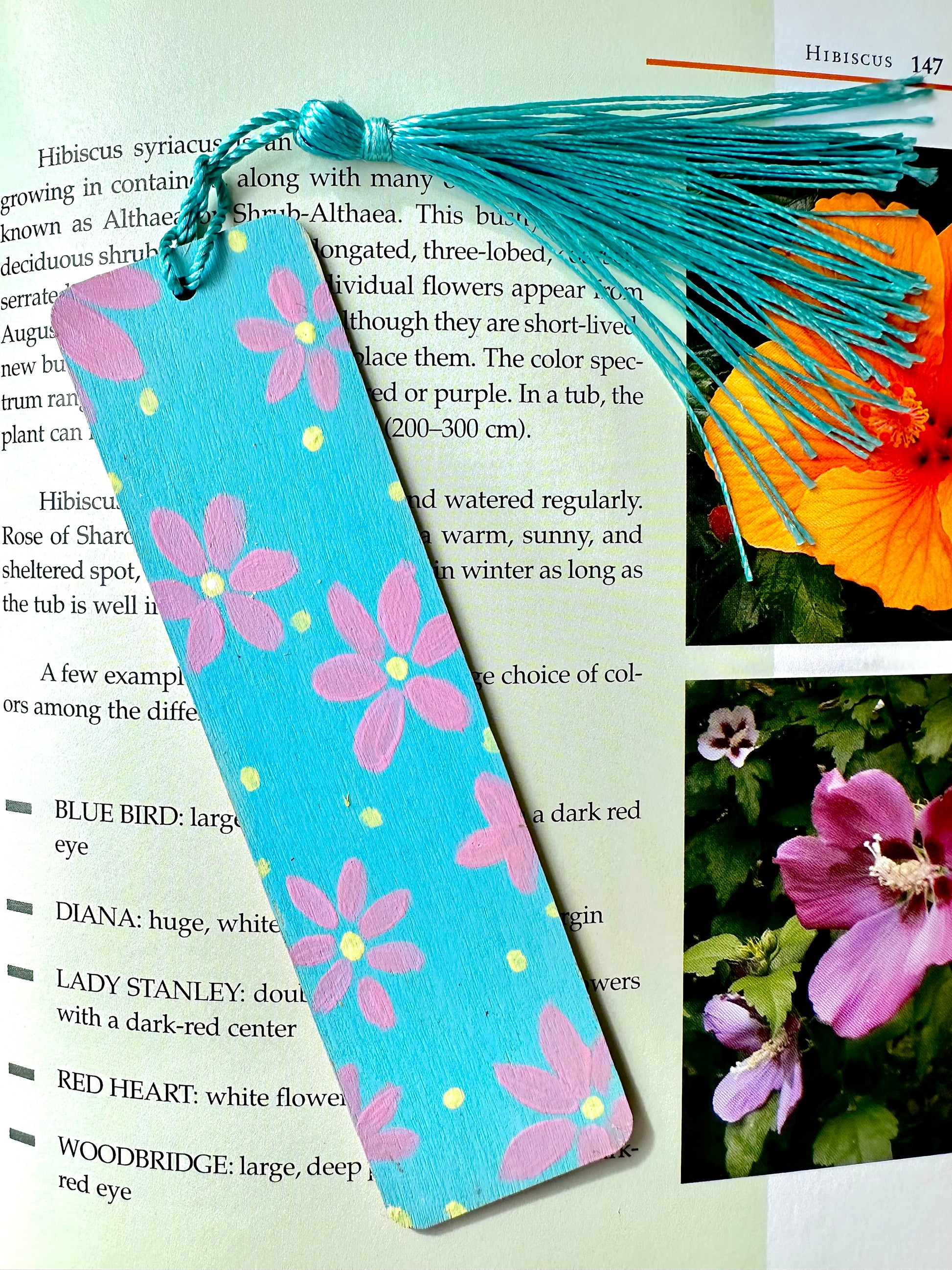 Read in style with a one of a kind wooden bookmark. Each piece is individually hand painted with acrylic, making every design unique. Finished with a satin varnish for protection, ready to accompany your next great read.