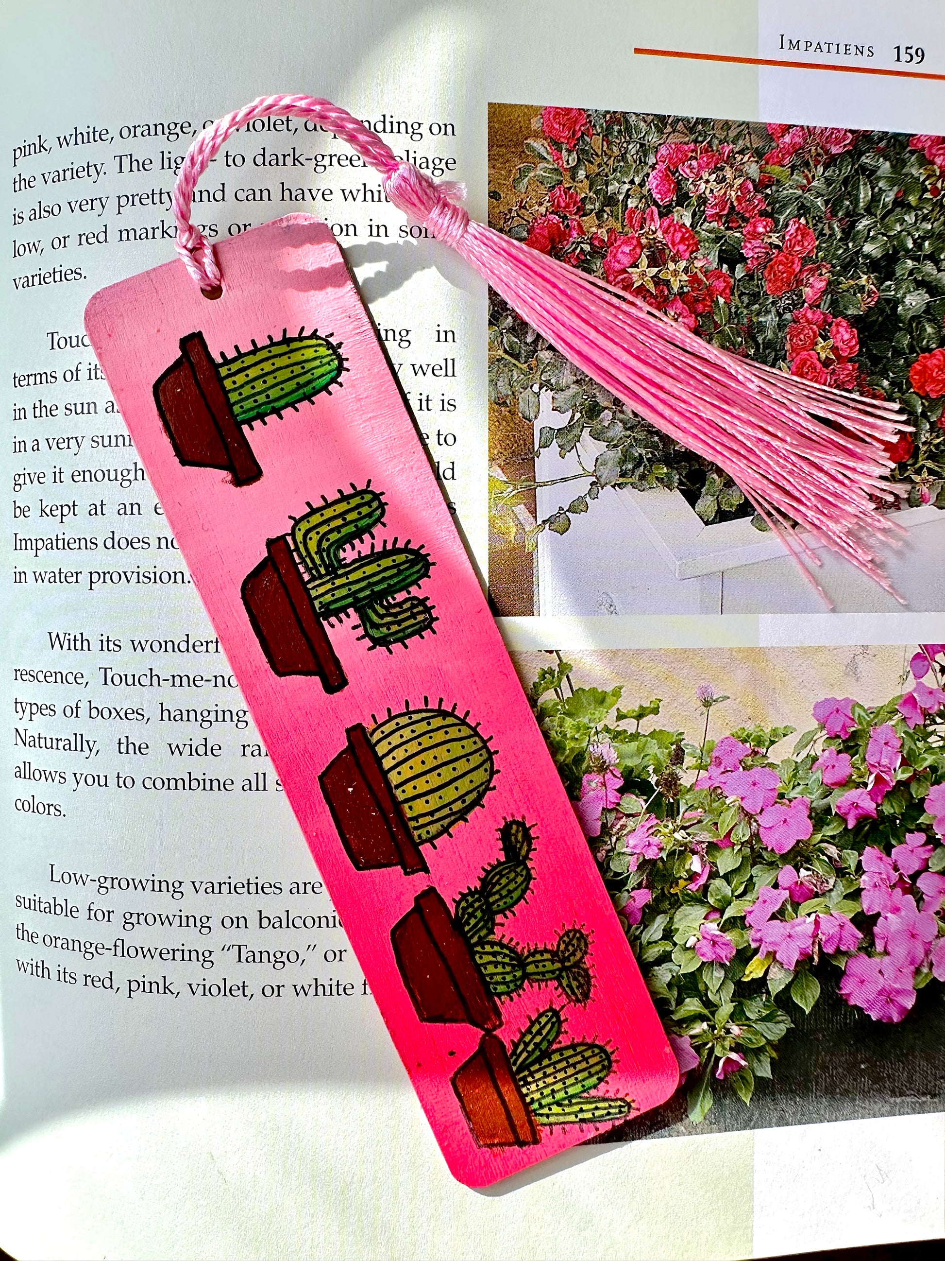 Read in style with a one of a kind wooden bookmark. Each piece is individually hand painted with acrylic, making every design unique. Finished with a satin varnish for protection, ready to accompany your next great read.