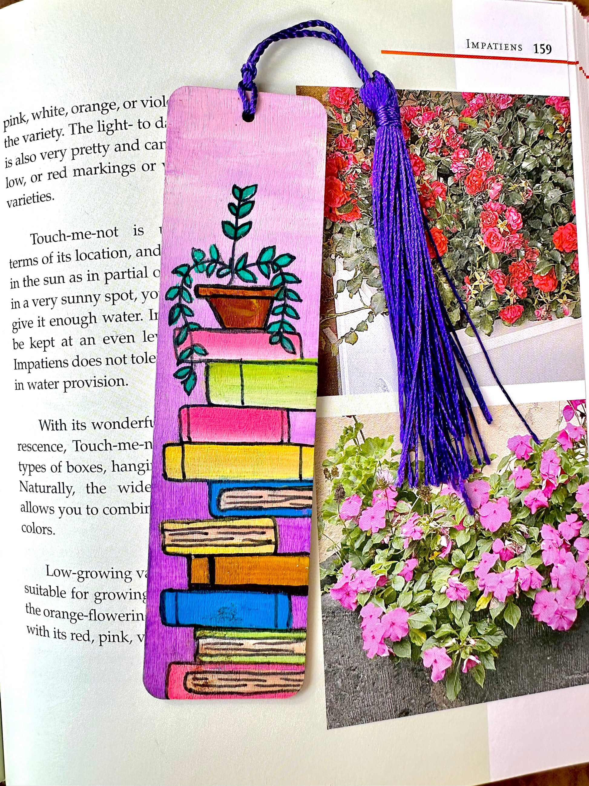 Read in style with a one of a kind wooden bookmark. Each piece is individually hand painted with acrylic, making every design unique. Finished with a satin varnish for protection, ready to accompany your next great read.