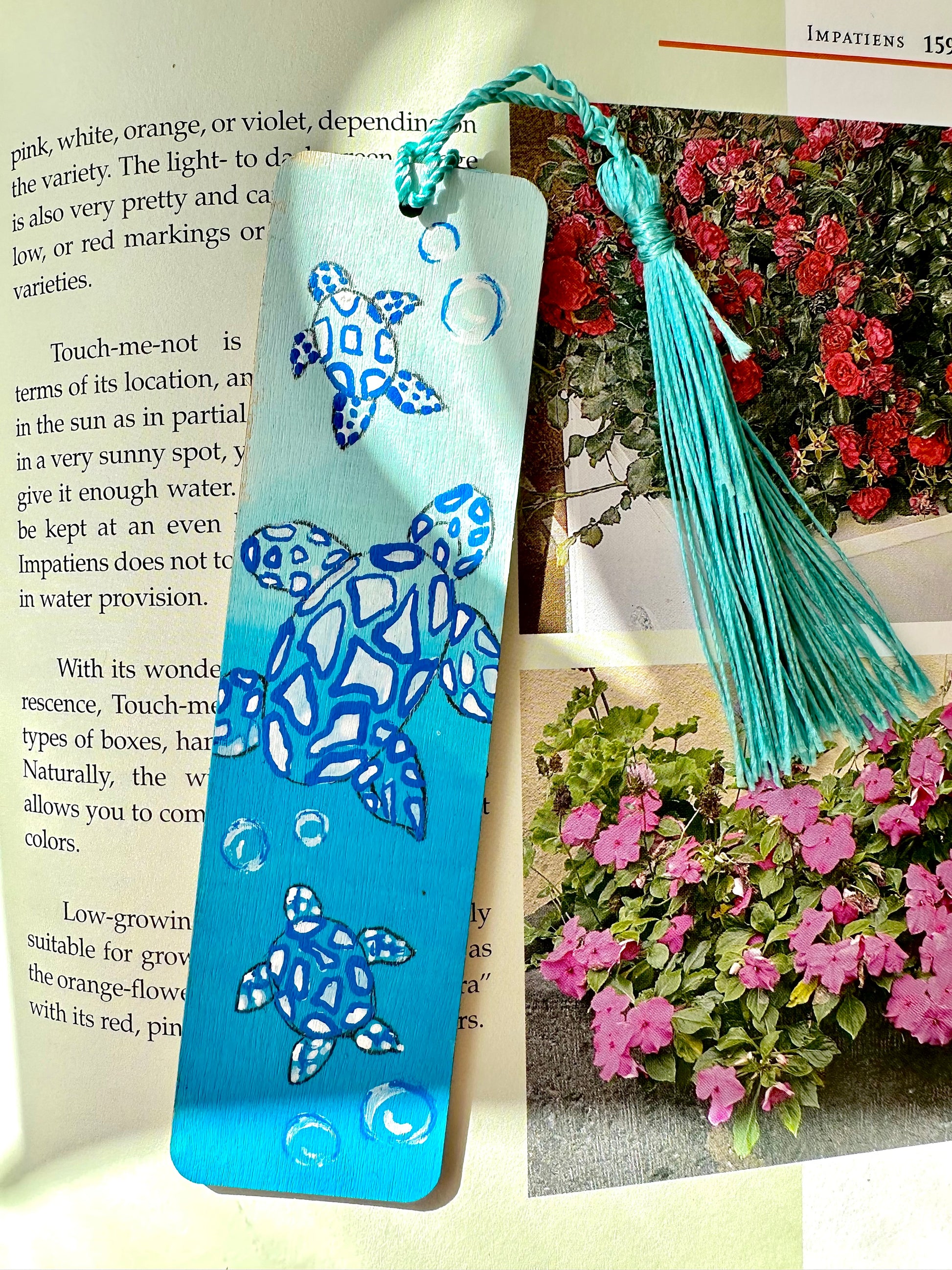 Read in style with a one of a kind wooden bookmark. Each piece is individually hand painted with acrylic, making every design unique. Finished with a satin varnish for protection, ready to accompany your next great read.