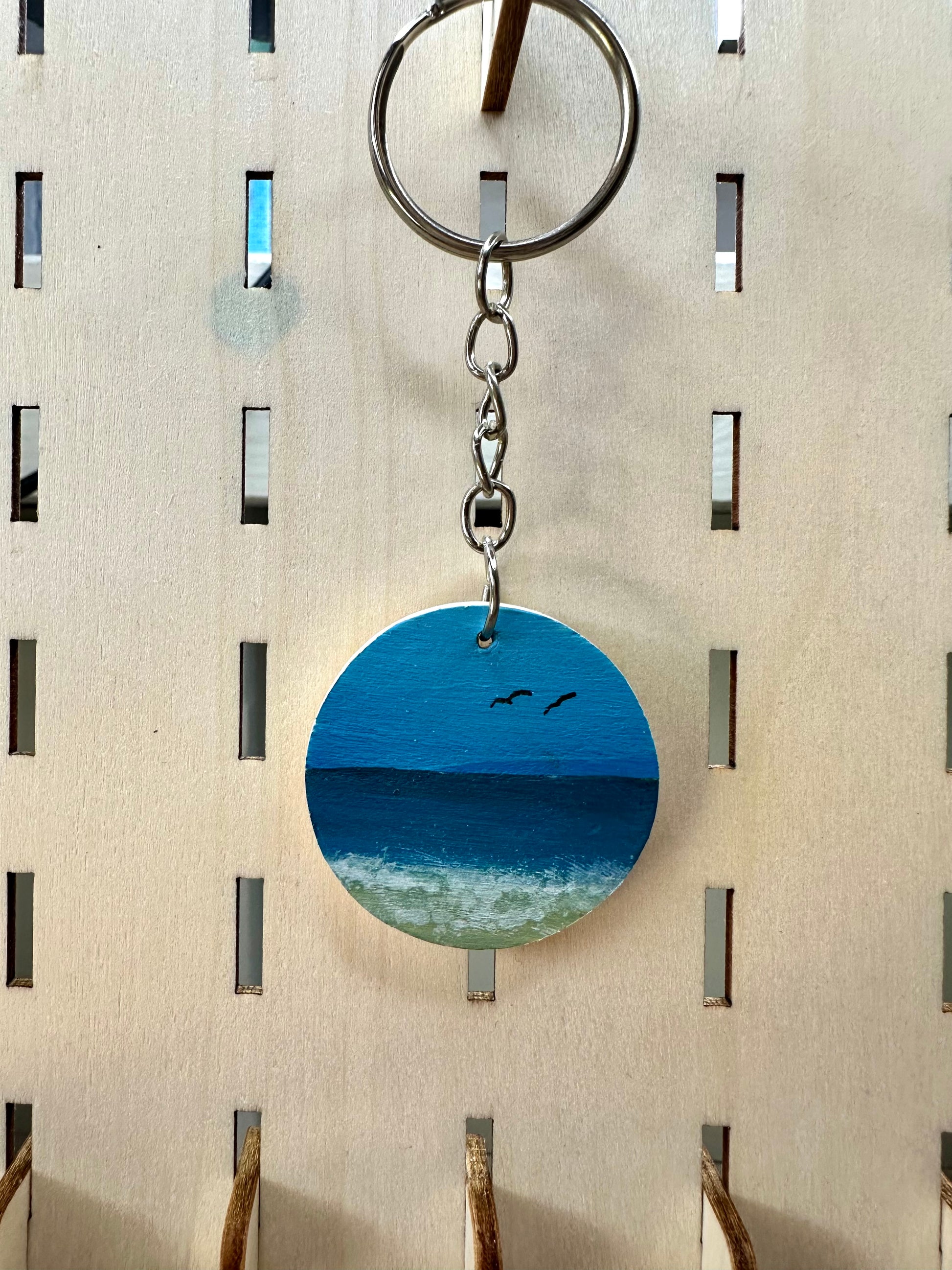 A handmade wooden keyring, carefully hand painted with acrylics and finished with a protective varnish for durability. Lightweight and sturdy, it’s ready to clip on to your keys, bag, or zipper pull adding a unique, handcrafted touch wherever you take